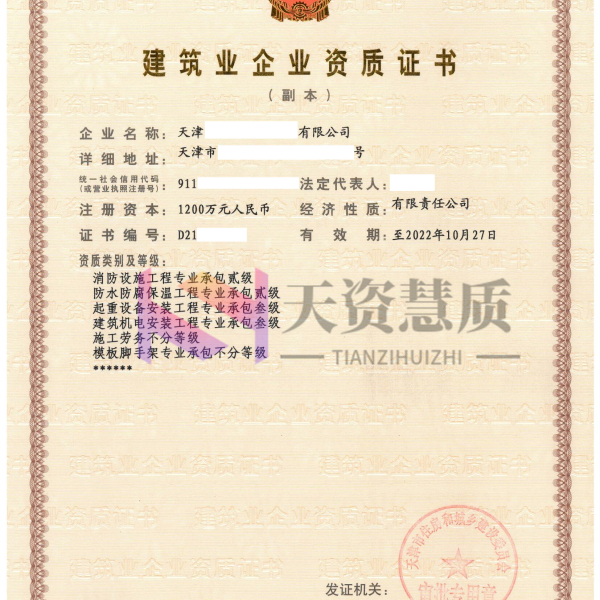 2022.6.15天津装饰装修二级资质审批通过,制证中。