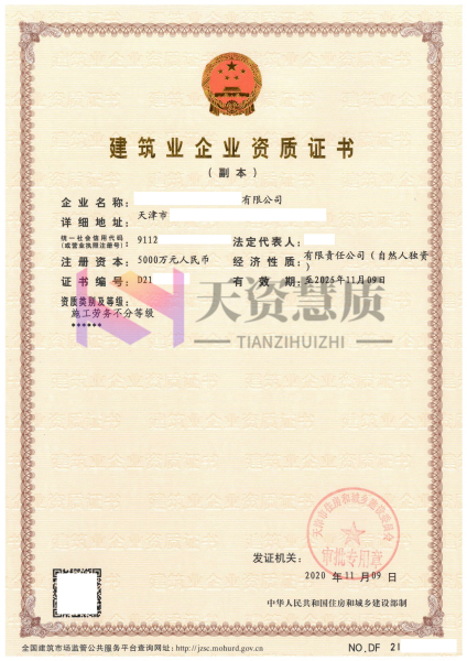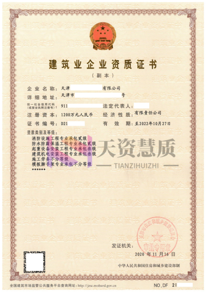 天津天资慧质是一家长期从事天津建筑施工资质代办、资质增项升级、公司资质转让、公司注册、财税服务的企业。我们提供天津建筑施工资质一站式服务,可为天津建筑业企业代办施工总承包资质(甲、乙级)、专业承包资质(通用类专业承包、装修装饰类专业承包、机电类专业承包、公路工程类专业承包)、施工劳务专业作业资质等,为客户解决企业运营中的各类问题。 在业内,我公司有着深厚的底蕴和丰富的经验。荣获天津市企业信用AAA等级证书、重合同守信用AAA信用企业、诚信经营示范AAA单位。多年来凭借丰厚的人才储备、完善的售后服务和管理体系取得了长足发展,成为天津市同行业中的佼佼者。        我们不断整合优质资源,立足天津市建筑业企业集群,以卓越品质响应客户价值需求,以专业服务,工匠之心,推动我市建筑行业蓬勃发展。  |